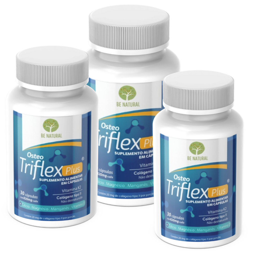 R: O Osteo Triflex Plus é um suplemento alimentar em cápsulas, desenvolvido para melhorar a saúde das articulações, ossos e músculos, com ingredientes como colágeno tipo II, cálcio, vitamina D e K2.